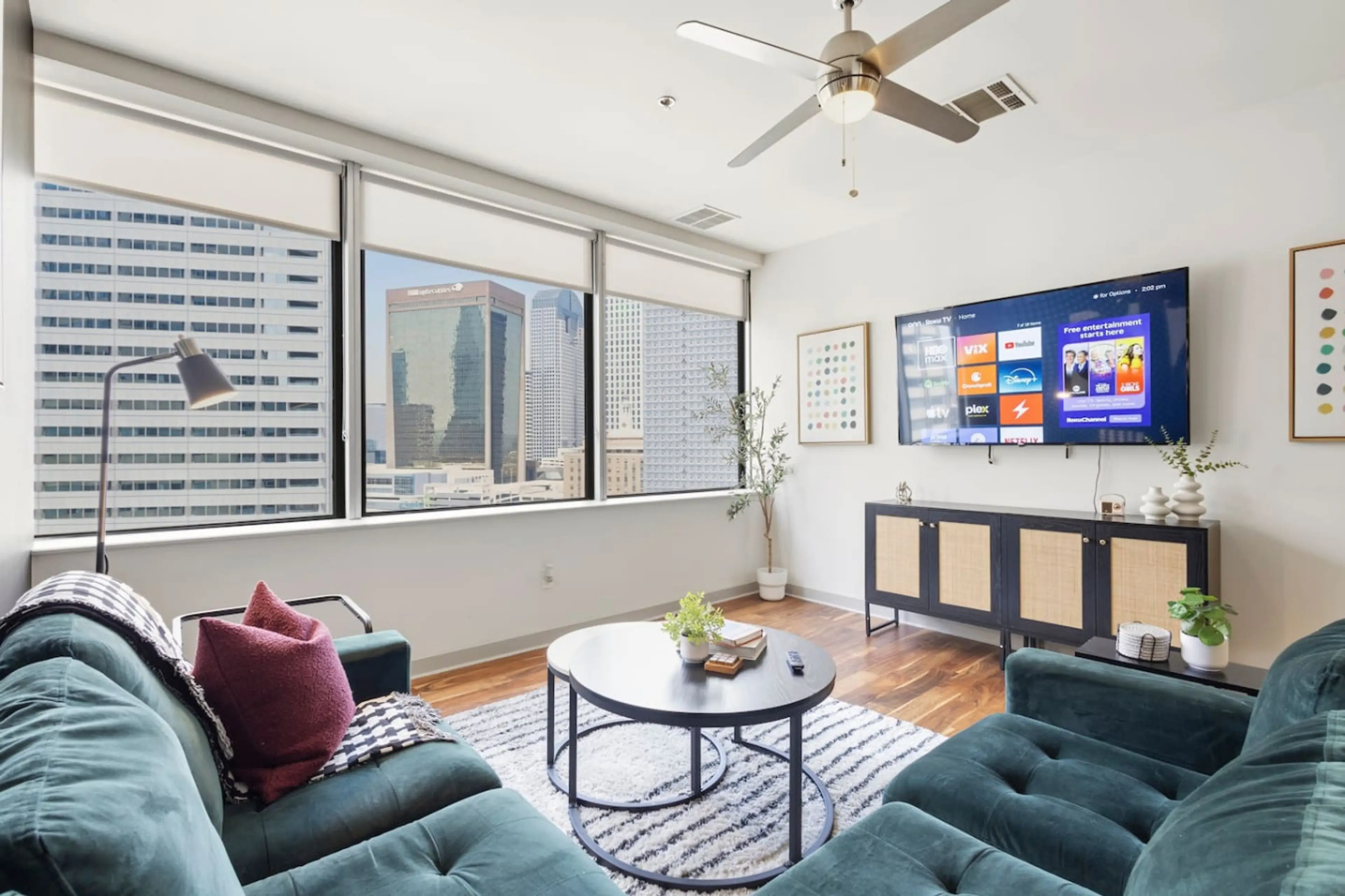 Wake up to sweeping Dallas skyline views and enjoy the convenience of a spacious high-rise stay in the heart of downtown. Perfect for business travelers, couples, families, or weekend groups, this 2-bedroom, 2-bathroom home offers comfort, style, and a smooth arrival experience. ➤ Spacious 2BR / 2B...
